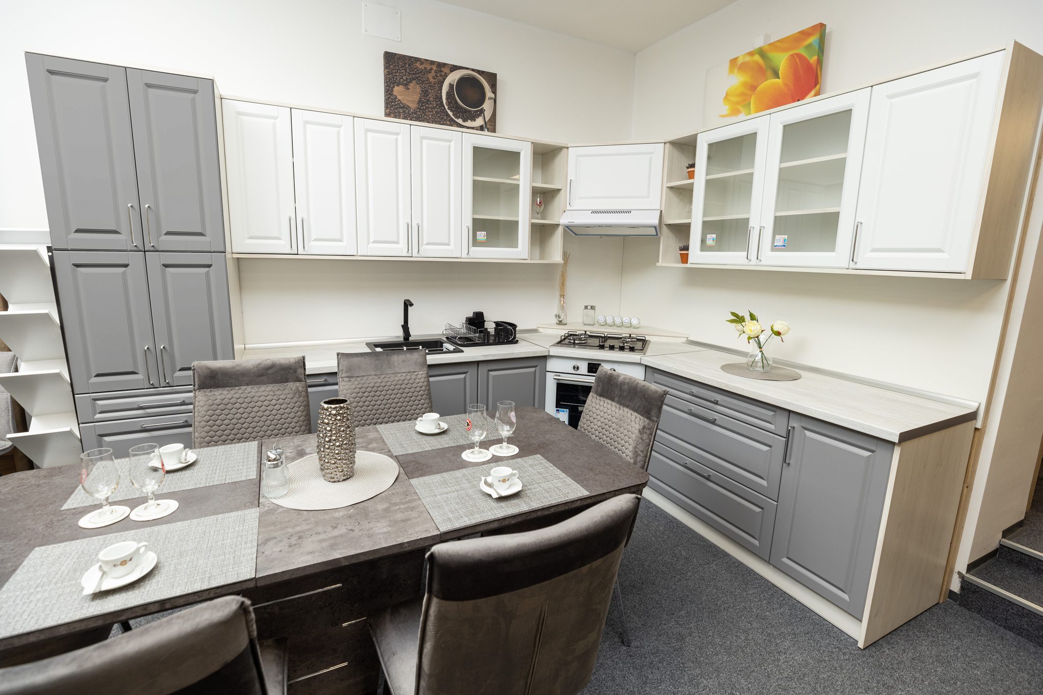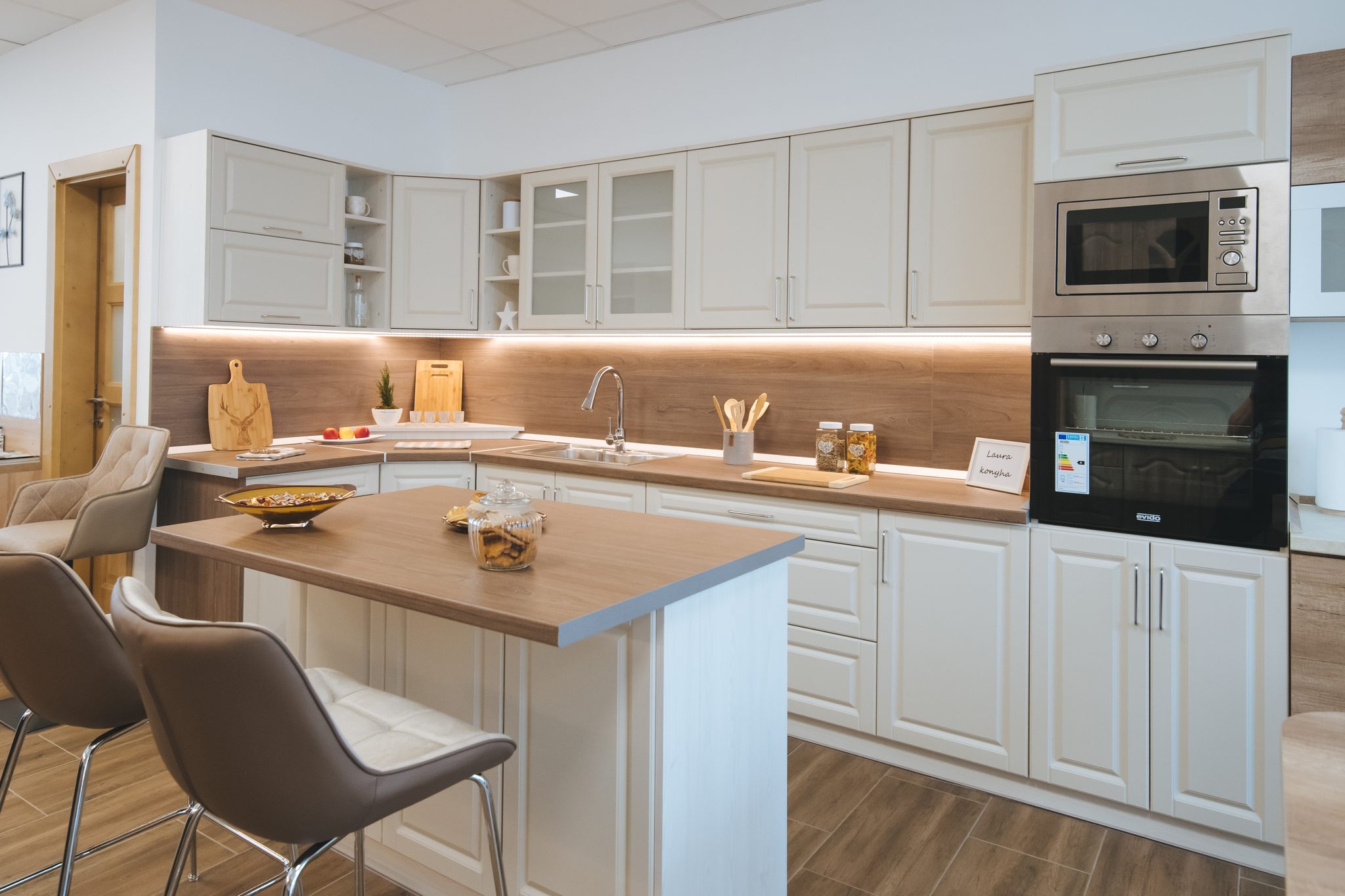Matt tónusaival és tradicionális formáival Laura modellünk bármely család konyhájába melegséget, otthonosságot csempész. Becsapódásmentes zsanérokkal gyártott ajtajai és nagy teherbírású fiókjai nemcsak kényelmes, hanem biztonságos használatot is garantálnak. Prémium fém fogantyúk és extra nagy mosogató teszi még impozánsabbá. Hatféle színben - matt provance, matt grafit, matt fehér, matt szürke, matt beige és matt cappuccino - és felnyíló változatban is elérhető.