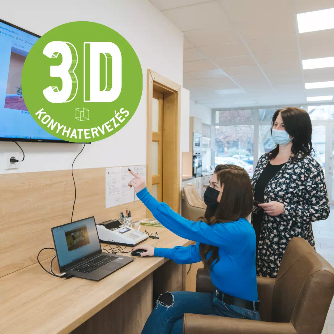 3D konyhatervezésben jártas kollégáink segítenek, hogy megjelenés és funkcionalitás terén is a lehető legtöbbet hozzuk ki új konyhádból, az igényeid és a rendelkezésre álló büdzséd figyelembevételével.